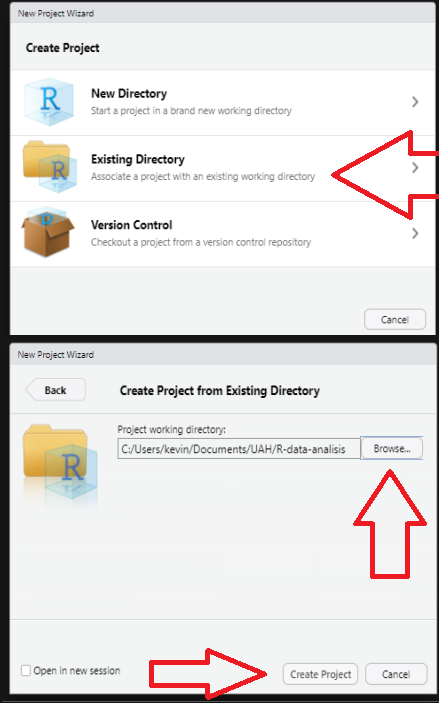 ejecutar y se abre R / RStudio desde ese directorio como raíz