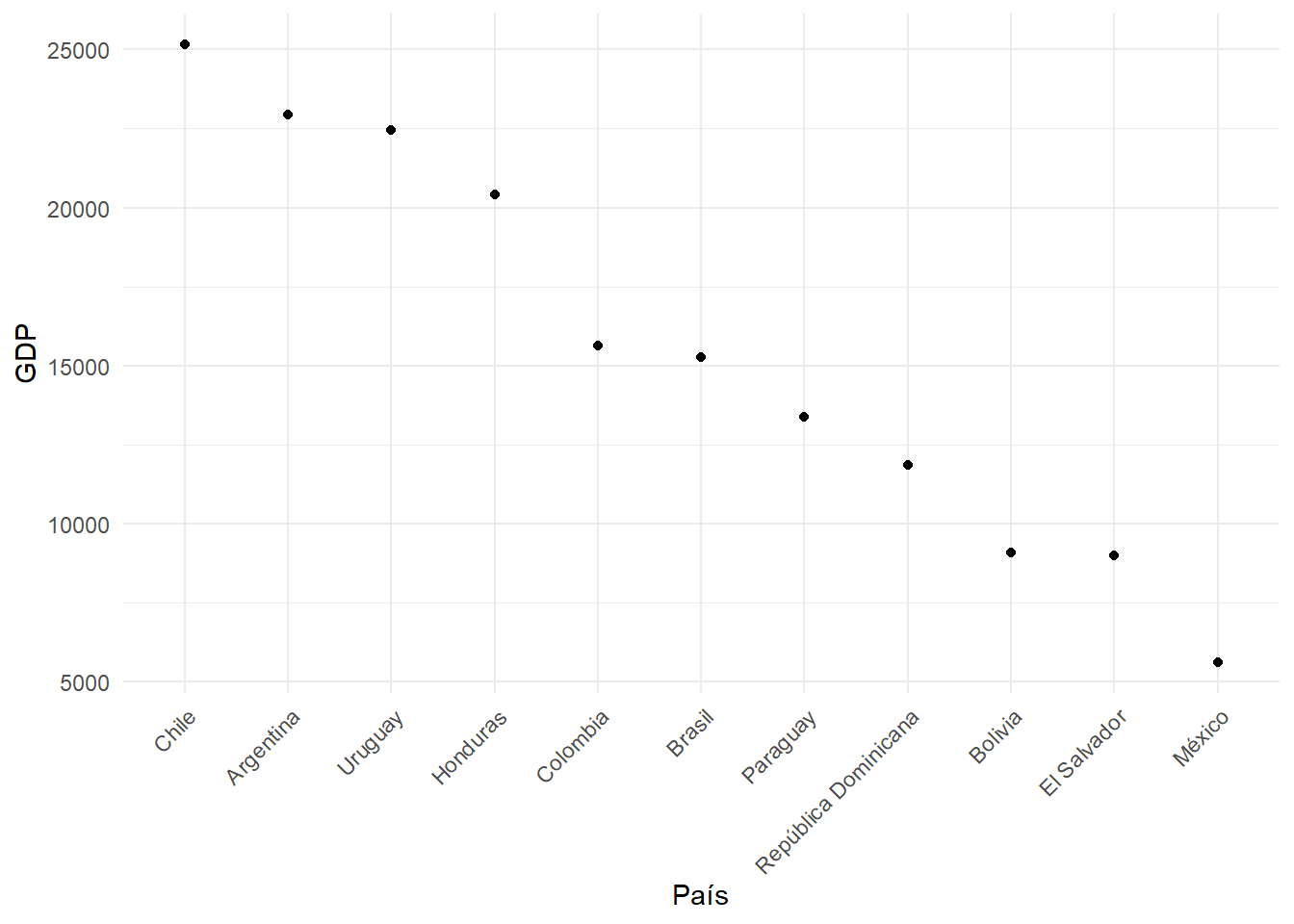 Sin embargo la Figure 1 entrega información desordenada. Mejor ordenar por tamaño de PIB que por orden alfabético de los países. Para eso
